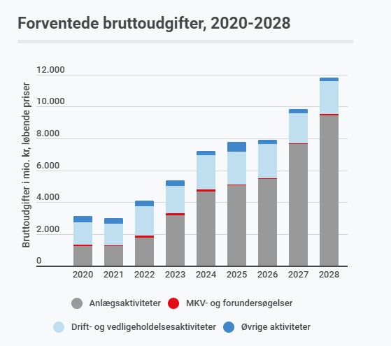 Vejdirektoratets forventede udgifter (statskroner)